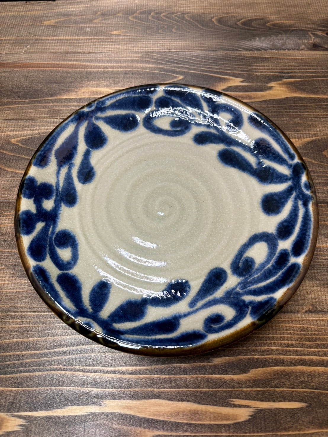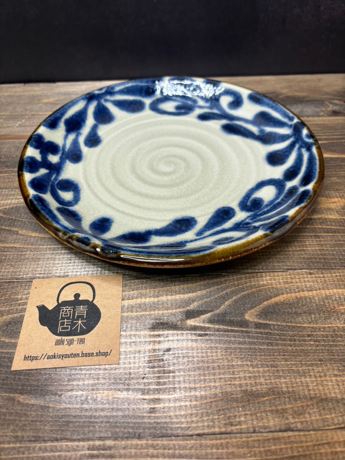 沖縄の伝統陶器にルーツを感じる、素朴でおおらかな民芸調唐草柄。瑠璃色は琉球の海、薄茶色の素地釉によく似合います。