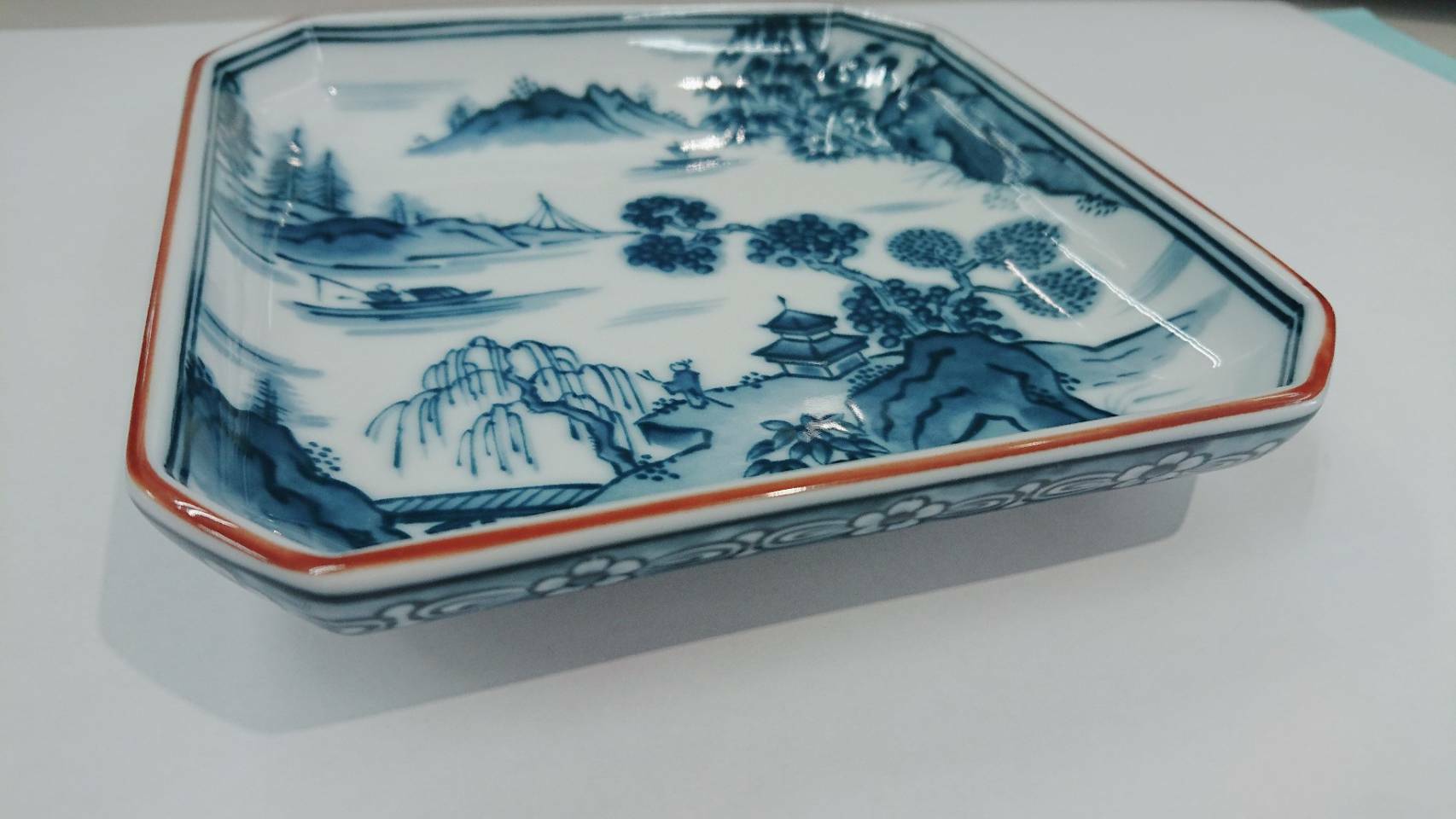 お皿の中に山水絵が描かれています。